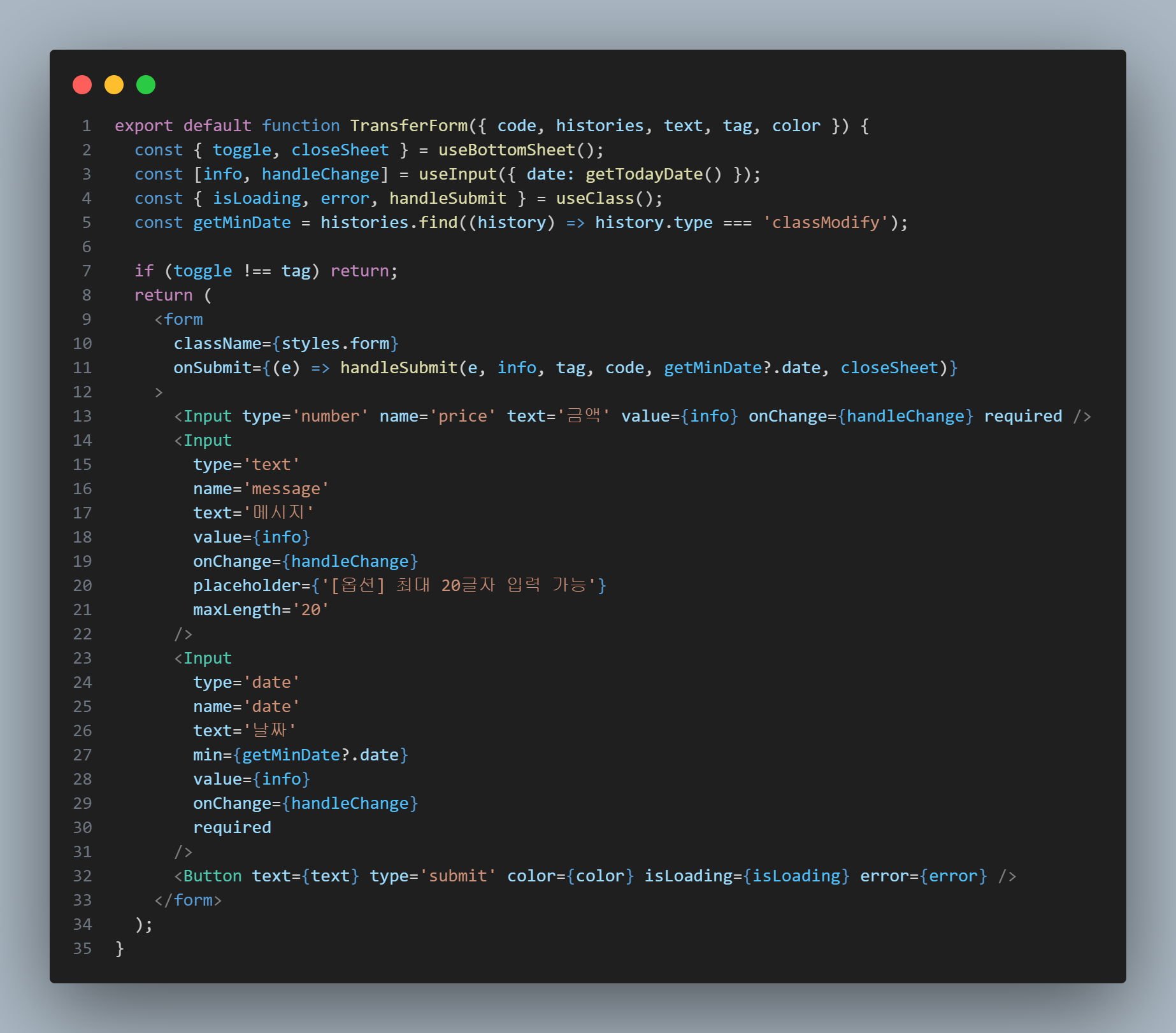 ์ถ๊ธ form์ ๊ฒฝ์ฐ input value๋ฅผ ๊ณต์ ํ๊ณ ์๋์