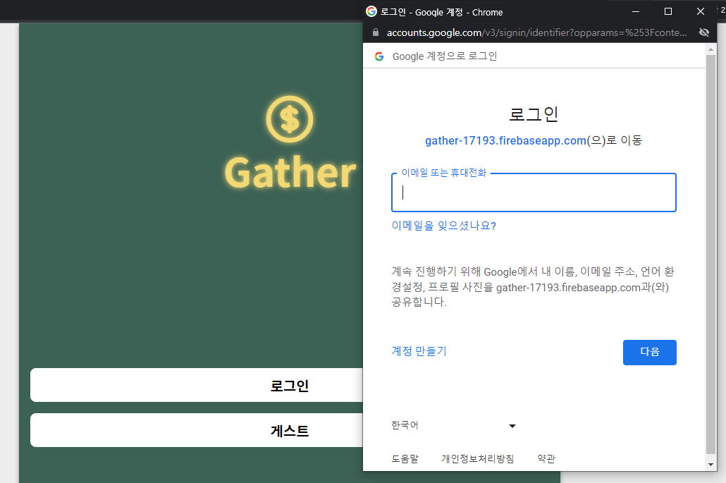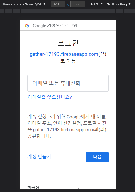 Firebase Authentication์ ์ด์ฉํด์ ๋ฐ์คํฌํ์์ ์ ์ํ๋ฉด ๊ตฌ๊ธ ๋ก๊ทธ์ธ์ด popup ์ฐฝ์ผ๋ก ๋จ๊ณ , ๋ชจ๋ฐ์ผ ๊ธฐ๊ธฐ์์ ์ ์ํ๋ฉด redirect ๋๋๋ก ๊ตฌํํ์์ต๋๋ค.