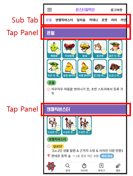 - Sub Tab Item을 클릭하면, 해당 하는 Tap Panel 위치로 이동한다.