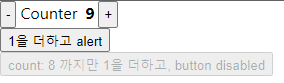 count: 8 까지만 1을 더하고, disabled