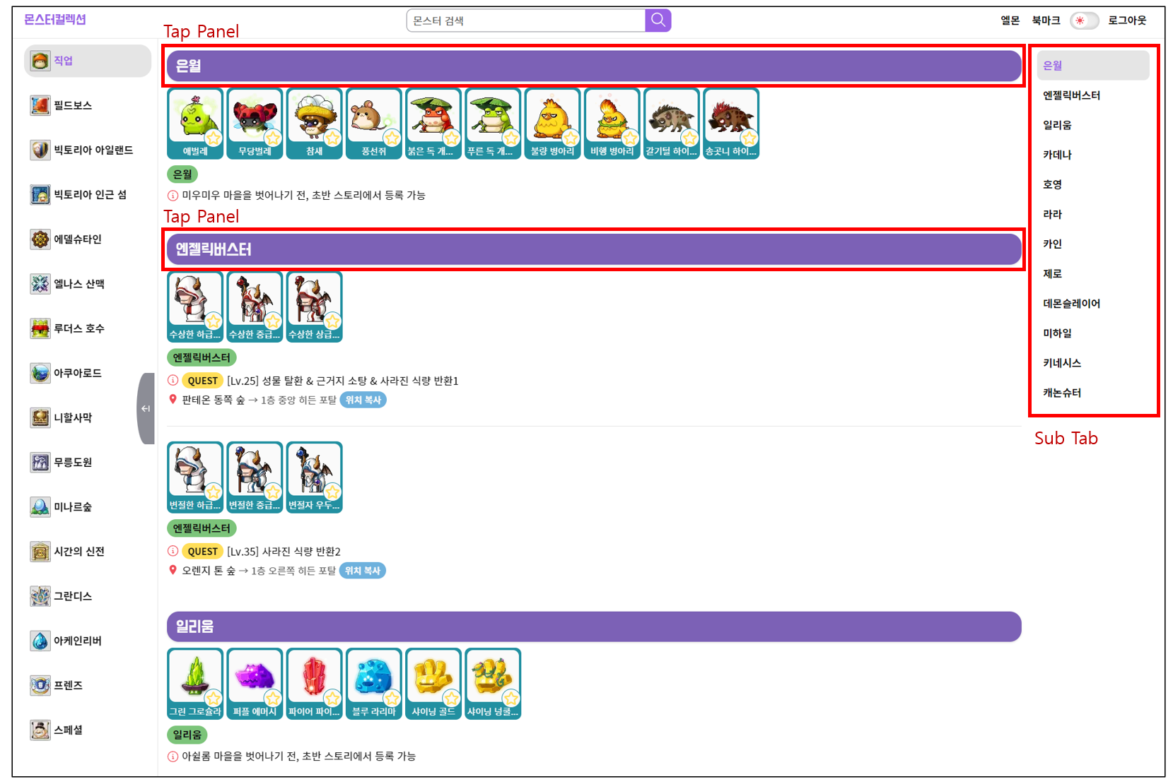 - Sub Tab Item을 클릭하면, 해당 하는 Tap Panel 위치로 이동한다.